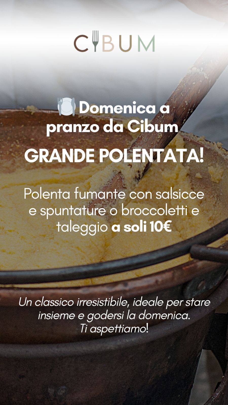Domenica a pranzo da Cibum | Polenta fumante con salsicce e spuntature o broccoletti e taleggio